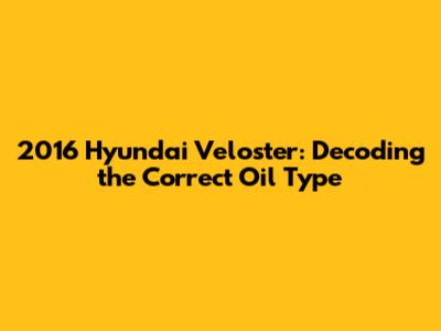 2016 Hyundai Veloster: Oil Type Guide & Maintenance Tips