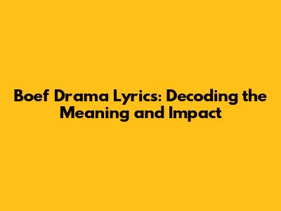 Boef Drama Lyrics: Decoding The Meaning And Impact