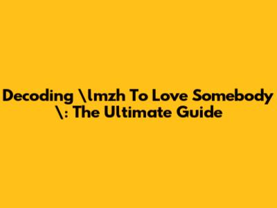 Decoding lmzh To Love Somebody: The Ultimate Guide