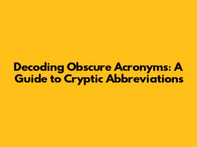Decoding Obscure Acronyms: A Guide To Cryptic Abbreviations