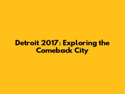 In conclusion, Detroit in 2017 was a city in transition, a city on the rise. It was a year of significant progress, but also of persistent challenges. The economic revitalization, the vibrant cultural scene, and the unwavering spirit of its people all contributed to a sense of optimism and hope. However, it was also clear that much work remained to be done to ensure that the benefits of Detroit's comeback reached all its residents. The challenges of poverty, crime, and inequality needed to be addressed head-on. Detroit's story is a testament to the resilience and determination of its people. It's a story of reinvention, innovation, and the power of community. As Detroit continues to evolve, it's important to remember the lessons of the past and to build a future that is both prosperous and equitable. The Motor City's comeback is far from complete, but the progress made in 2017 laid a strong foundation for continued growth and success. Detroit's enduring spirit will continue to drive its resurgence for years to come. The journey is ongoing, but the destination is clear: a thriving, inclusive, and vibrant city for all.