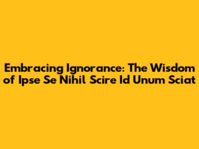 Embracing Ignorance: The Wisdom Of 'Ipse Se Nihil Scire Id Unum Sciat'
