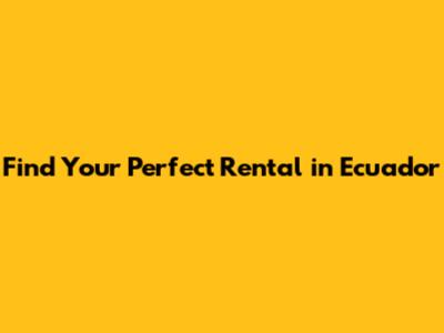 Find Your Perfect Rental In Ecuador