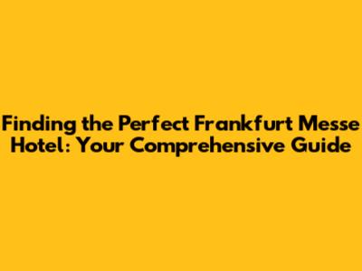Understanding the Frankfurt Messe Area and Your Hotel Needs