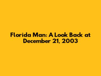 Florida Man: A Look Back At December 21, 2003