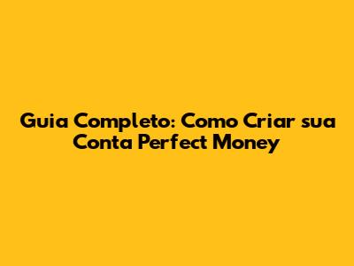 Guia Completo: Como Criar Sua Conta Perfect Money