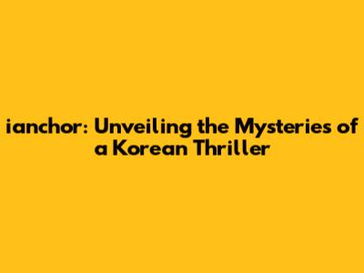 Ianchor: Unveiling The Mysteries Of A Korean Thriller