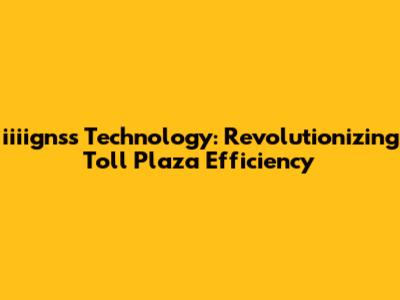 Iiiignss Tech: Revolutionizing Toll Plaza Efficiency