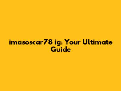 Imasoscar78 Ig: Your Ultimate Guide