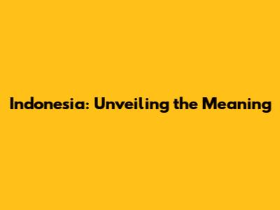 Indonesia: Unveiling The Meaning