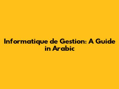 Informatique De Gestion: A Guide In Arabic