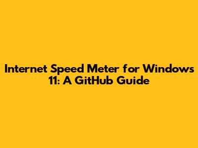 Internet Speed Meter For Windows 11: A GitHub Guide