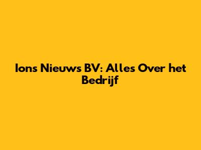 Ions Nieuws BV: Alles Over Het Bedrijf
