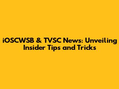 IOSCWSB & TVSC News: Expert Tips And Tricks