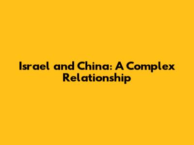 Israel And China: A Complex Relationship