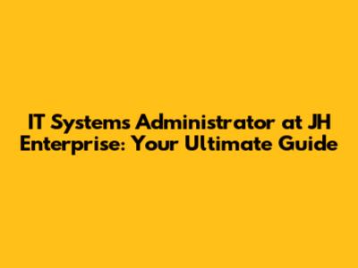 IT Systems Administrator At JH Enterprise: Your Ultimate Guide
