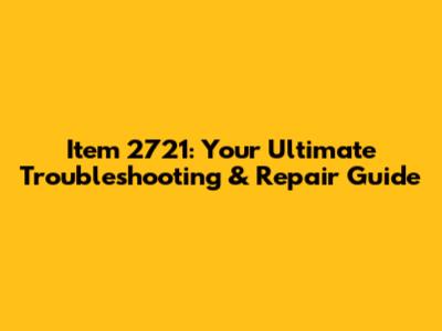 Item 2721: Troubleshooting & Repair Guide