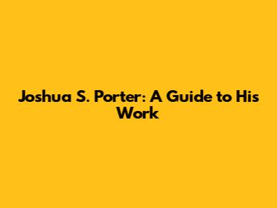 Joshua S. Porter: A Guide To His Work