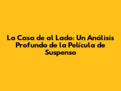 La Casa De Al Lado: Un Análisis De La Película De Suspenso