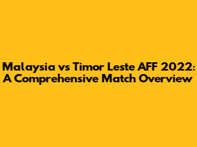 Hey guys, let's dive into the Malaysia vs. Timor Leste match from the AFF Championship 2022! This game was a real nail-biter, and we're going to break down everything from the final score to the key moments that defined the match. We'll look at the statistics, discuss the tactics, and see how the players performed. Get ready for a deep dive, because we're going to cover all the bases! So, grab your snacks, settle in, and let's get started. This analysis aims to give you a complete picture of what happened on the field, offering insights into the strategies, player performances, and the overall impact of the match on both teams' campaigns in the tournament. We will also explore the significance of the result and its implications for the future matches of both Malaysia and Timor Leste. This comprehensive review will cover various aspects of the game, ensuring you don't miss a single detail from this exciting encounter.