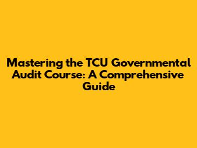 Mastering The TCU Governmental Audit Course