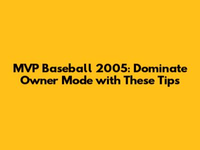 MVP Baseball 2005: Dominate Owner Mode With These Tips