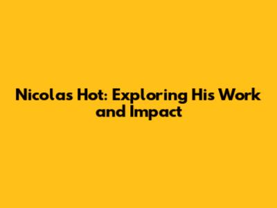 Nicolas Hot: Exploring His Work And Impact