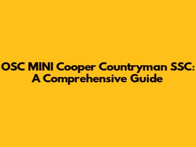 Hey there, car enthusiasts! Today, we're diving deep into the world of the OSC MINI Cooper Countryman SSC. Whether you're a proud owner, a potential buyer, or just a curious gearhead, this guide is packed with everything you need to know about this sporty and versatile vehicle. We'll explore its features, performance, potential issues, and what it takes to keep it running smoothly. Buckle up, and let's get started!
