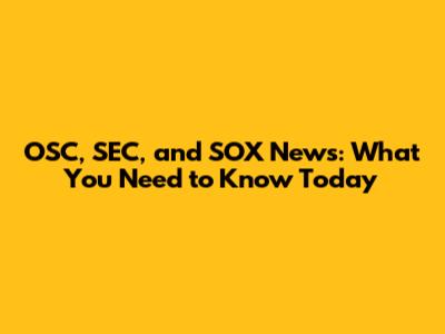 OSC, SEC, And SOX News: What You Need To Know Today