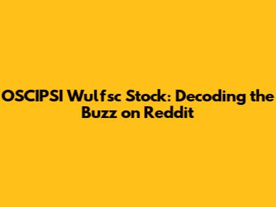 Hey everyone! Ever stumble upon a stock and suddenly, the internet explodes with chatter? That's what's happening with OSCIPSI Wulfsc stock right now. If you're anything like me, you're probably wondering what all the fuss is about. I've been diving deep into the Reddit threads, financial news, and everything in between to give you the lowdown on this intriguing stock. Let's break down the OSCIPSI Wulfsc stock, decipher the Reddit hype, and see if it's all just hot air or something more substantial.