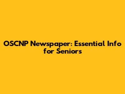 OSCNP Newspaper: Essential Info For Seniors