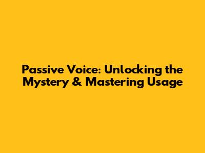 Passive Voice: Unlocking The Mystery & Mastering Usage