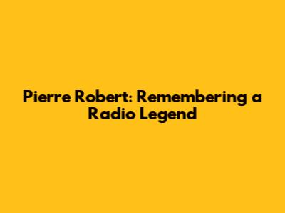 Pierre Robert: Remembering A Radio Legend