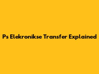 Ps Elekronikse Transfer Explained