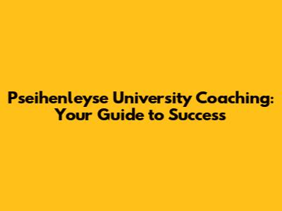 Pseihenleyse University Coaching: Your Guide To Success