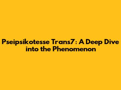 Hey guys! Today, we're diving deep into something that's been buzzing around, and that's Pseipsikotesse Trans7. If you've been scrolling through social media or catching up on trending topics, chances are you've stumbled upon this term. It sounds a bit mysterious, right? Well, that's part of its allure! We're going to break down what Pseipsikotesse Trans7 actually means, where it came from, and why it's become such a hot topic. Get ready to become an expert on this, because by the end of this article, you'll know everything there is to know. We'll explore its origins, its impact, and some of the common misconceptions that might be floating around. So, buckle up, grab your favorite drink, and let's get this knowledge party started!