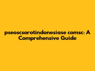 Pseoscsorotindonesiase Comsc: A Comprehensive Guide