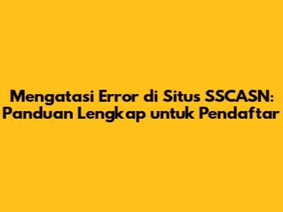 Memastikan kelancaran pendaftaran CPNS dan PPPK melalui situs SSCASN memang krusial, guys. Tapi, apa jadinya kalau tiba-tiba muncul error? Panik? Jangan dulu! Artikel ini hadir untuk memandu kamu mengatasi berbagai masalah yang mungkin timbul saat mengakses atau menggunakan situs SSCASN. Kita akan membahas penyebab umum error, solusi praktis, dan tips agar pendaftaranmu berjalan sukses. Yuk, simak!