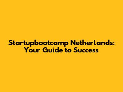 Startupbootcamp Netherlands: Your Guide To Success