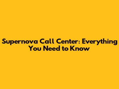 Supernova Call Center: Everything You Need To Know