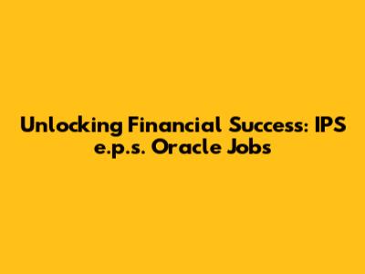 Unlocking Financial Success: IPS E.p.s. Oracle Jobs