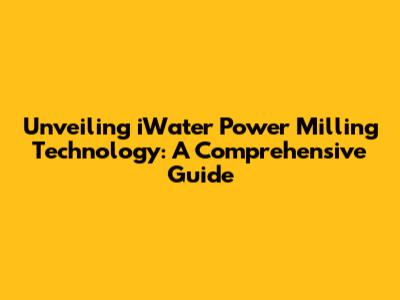 Unveiling IWater Power Milling Technology: A Comprehensive Guide