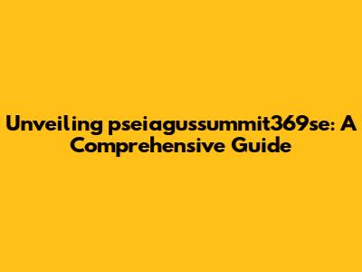 Unveiling Pseiagussummit369se: A Comprehensive Guide