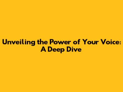 Unveiling The Power Of Your Voice: A Deep Dive