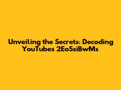 Unveiling The Secrets: Decoding YouTube's 2Eo5siBwMs
