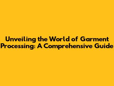 Unveiling The World Of Garment Processing: A Comprehensive Guide
